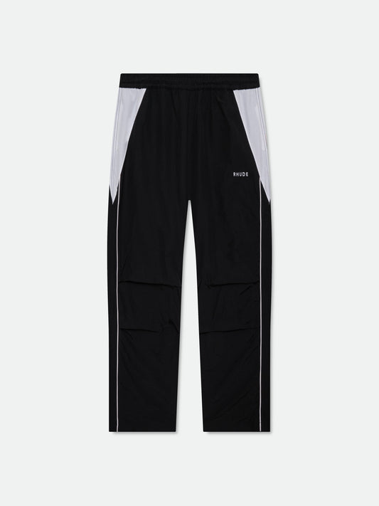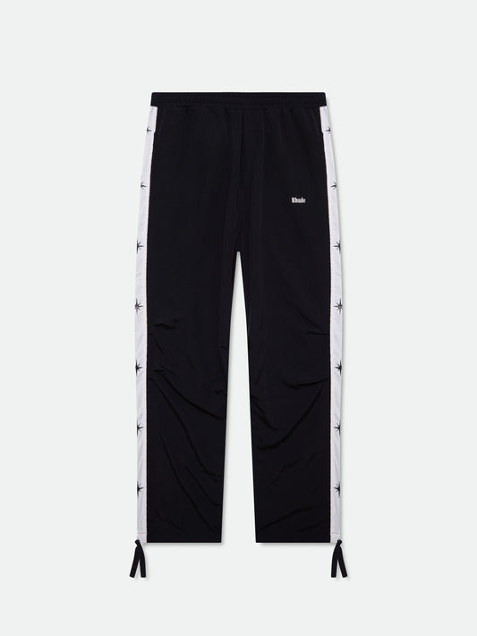 Our classic track pant features Rhude classic logo on front, with diagonal white stripes contrast...
