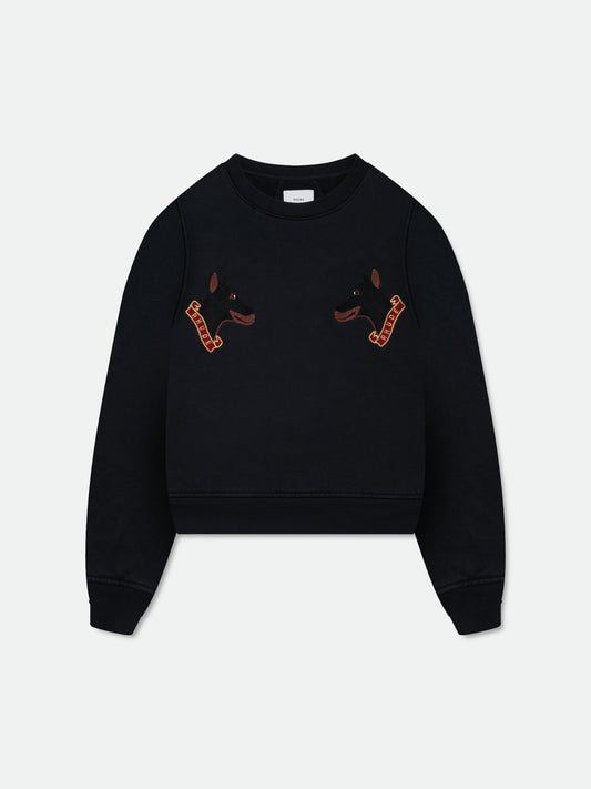 This long-sleeve cotton crewneck showcases the Rhude London Hounds embroidered on the front, with bold...