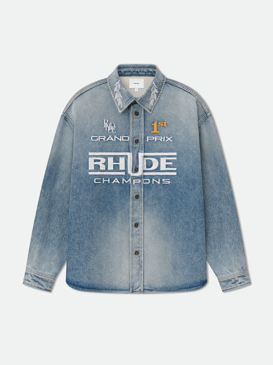 Upgrade your casual style with our Premium Long Sleeve Denim Overshirt. Featuring embroidered designs of...