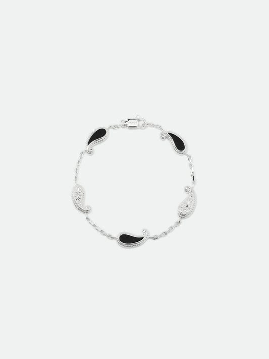 "Tears of Joy" bracelet crafted from .925 sterling silver. It features five linked paisley motifs,...