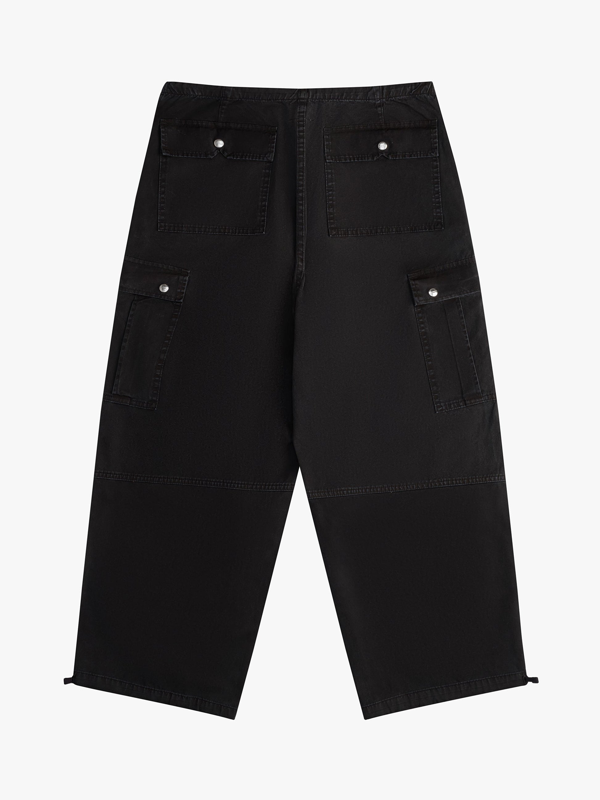 Crafted from lightweight cotton, our premium cargo pants ensure a comfortable and relaxed fit. They feature twin patch cargo pockets at the front thighs and back custom pockets. Completed with ties on the hips and ankles.